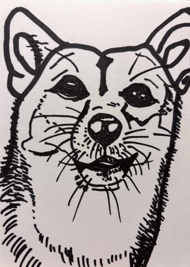 前にアップした、ヒゲの濃いこむぎ(豆柴)の絵を眺めていたら、ふとお仕置きだべ... -