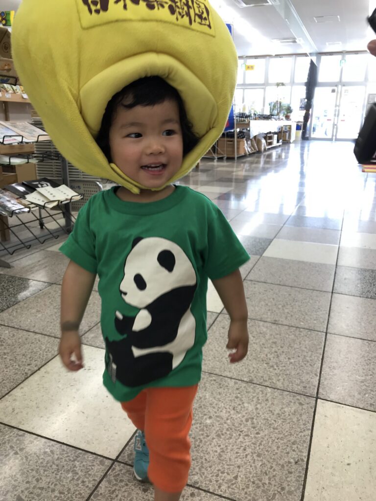 このときはまだちっこくて、ユズの被りものを被ってごっきげん♪だったのに、四万十川の川下りでは大号泣。