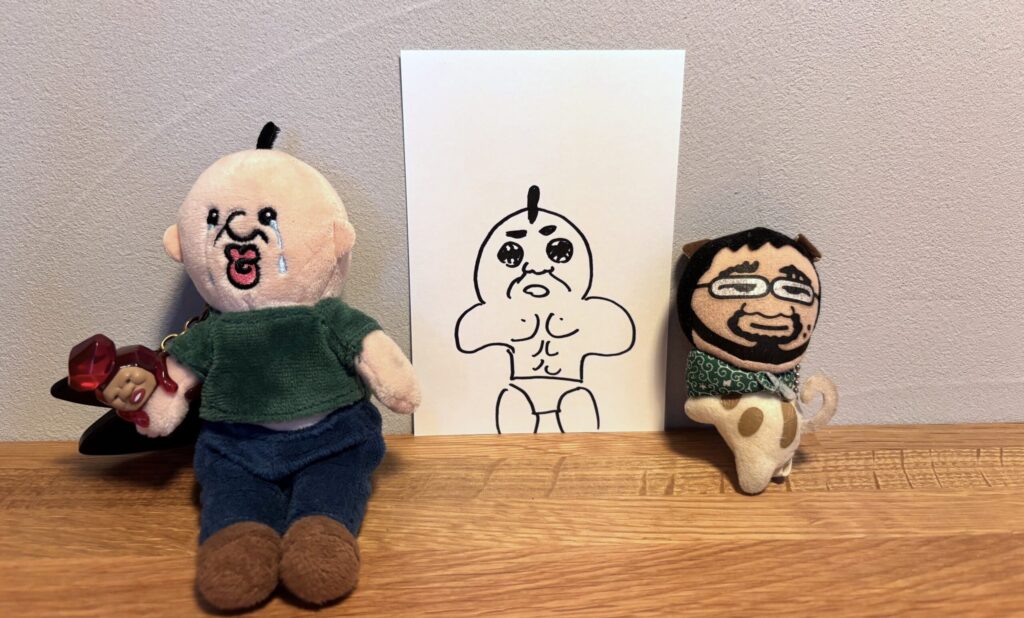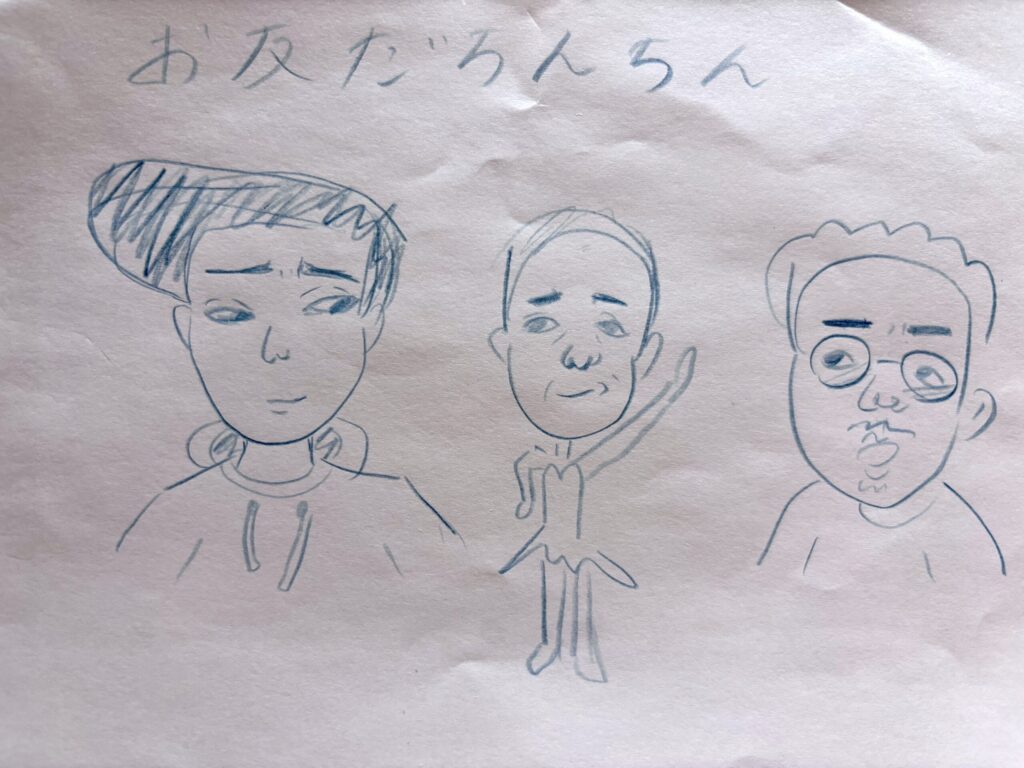 こっちゃんの謎。なぜかときどき、筋肉マッチョな絵を描く。プロレスラーみたいだ... -