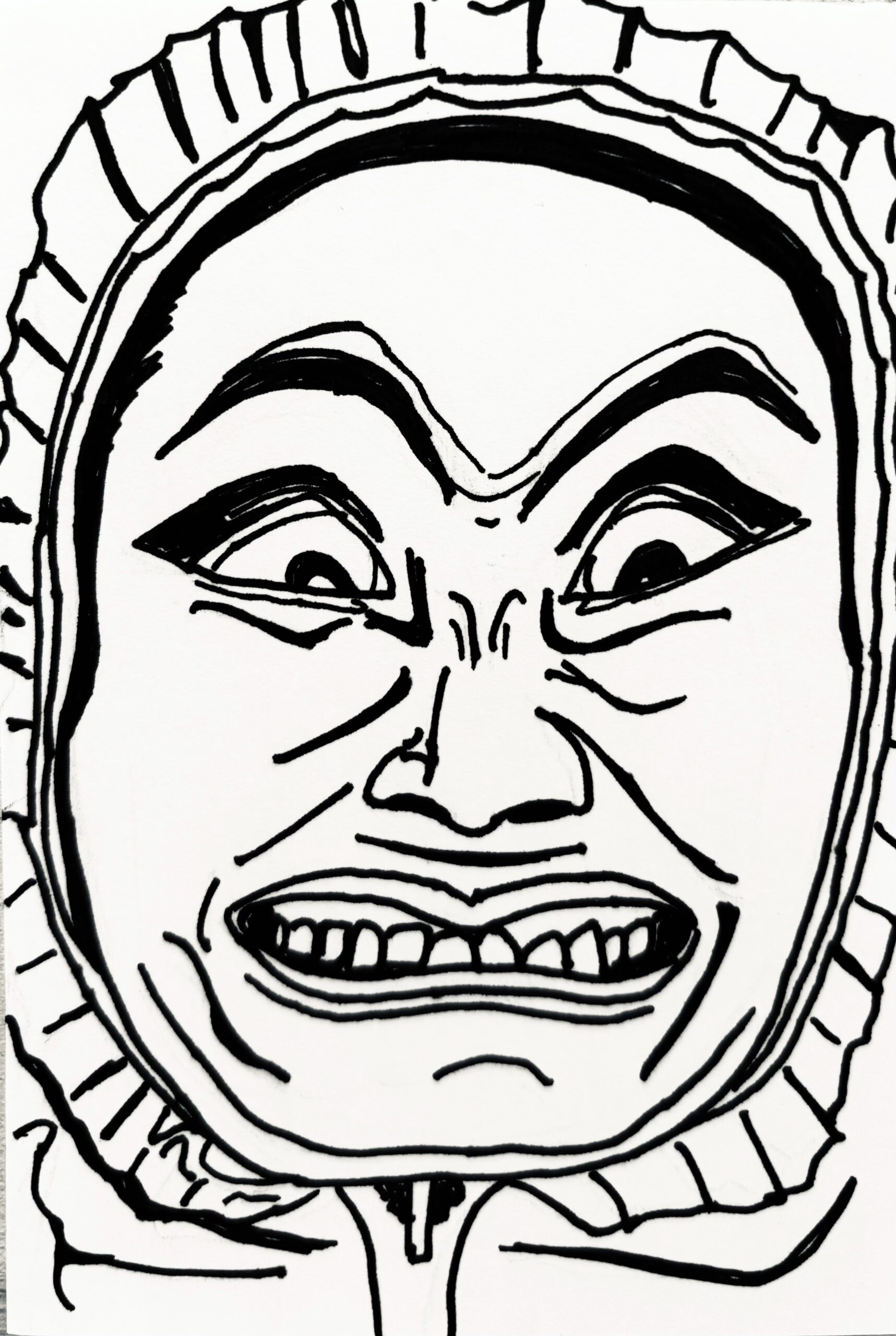 城之内・変顔と検索するとたくさん出てくるので、参照していただきたい。その顔を見た時は、ものすごく驚いたのだが、実際に描こうとしてみると、城之内と比べてこっちゃんの顎はかなり小さいのである。こっちゃんに見えるレベルでしゃくれ顎にするのはなかなか難しかった。