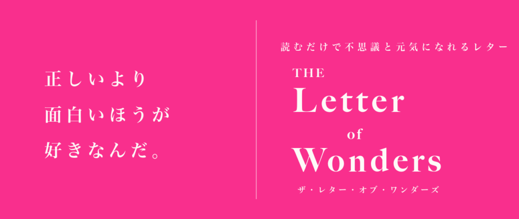 THE LETTER OF WONDERS(レター・オブ・ワンダーズ)は読むたびに、あなたの感性が動き出す、新感覚レターです。自分らしい創造のスイッチを入れたい方にお届けしています。
