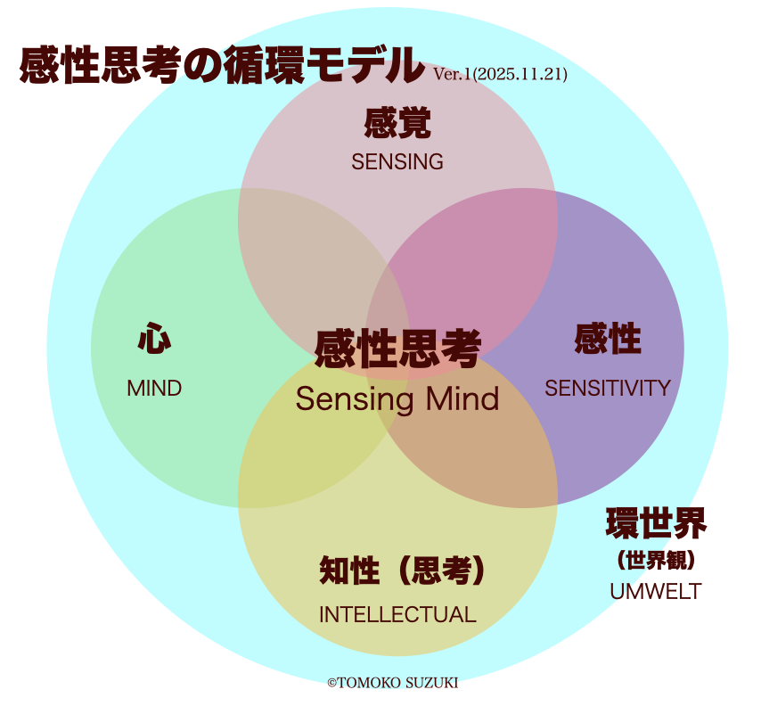 生まれたがっているものに気づき、それに形を与える。そんな「創造的な循環」を表しているのが、「感性思考の循環モデル」だ。