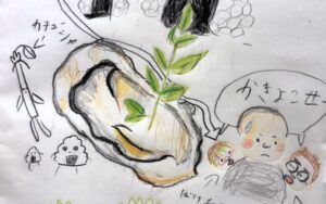 さて、運動会の打ち上げは、こっちゃんがイチオシの和食処なかじまであります。美味しい料理をいただいては、まるで山下清のように絵をプレゼントしているこっちゃん。