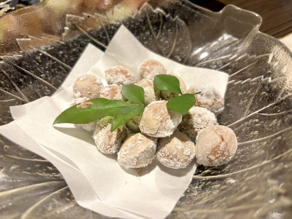 ちょっと大人の階段を登ったようですね。雪化粧のように塩がまぶされた大粒の銀杏は、ふっくら熱々でとても美味しい。そして大将のあしらいはいつも美しい。