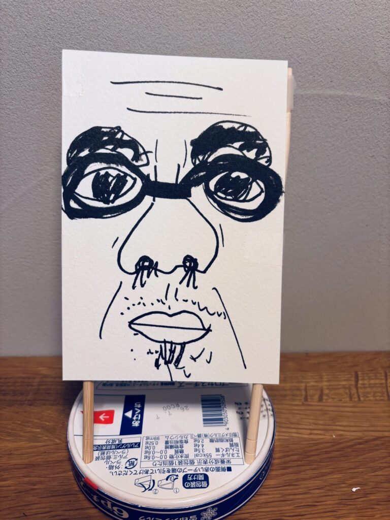 そして、この絵は、雪印の6Pパックの裏面にぶっ刺さった自作のキャンバス。