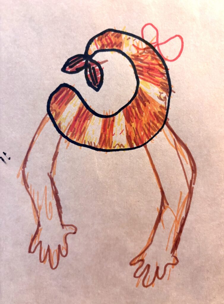 わたしの妹が来た時に遊びながら描いていたものなのだが、描き終えたら満足して、その辺に放置されていた。