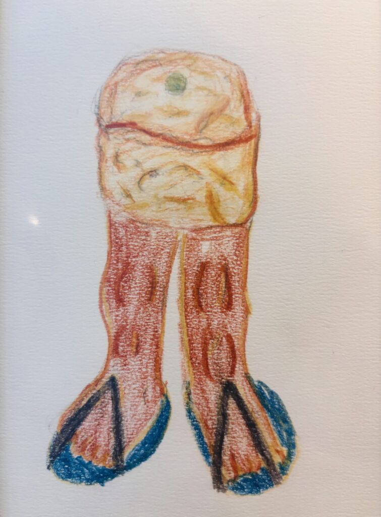 今日のシュウマイうまかった A5, 画用紙に色鉛筆 こっちゃんは、なぜかムキムキボディをたまに描く。マッチョが好きなのか? 一方で、リビングにある彼女の「腹筋カレン…