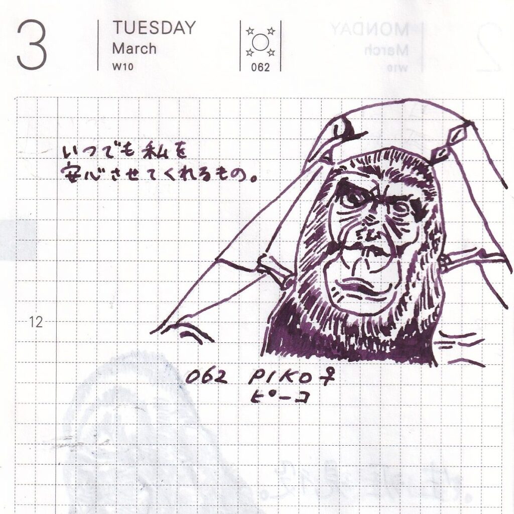 真っ黒な身体にピンク色のブランケットをまとい、繊細な手つきで、ブランケットをたたんだり広げたり。片時も離さず、大切に持ち歩いている姿が忘れられません。